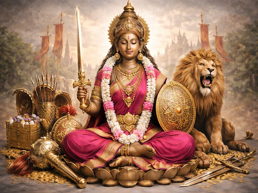 To pray to Durga, offer red hibiscus, a deepam at dusk, or simply your intention to fight what holds you back. She listens to action more than words. Show her your readiness to rise. Her blessings move quickly when you’re willing to meet her halfway. She does not take away the challenge. She gives you the courage to face it fully.
