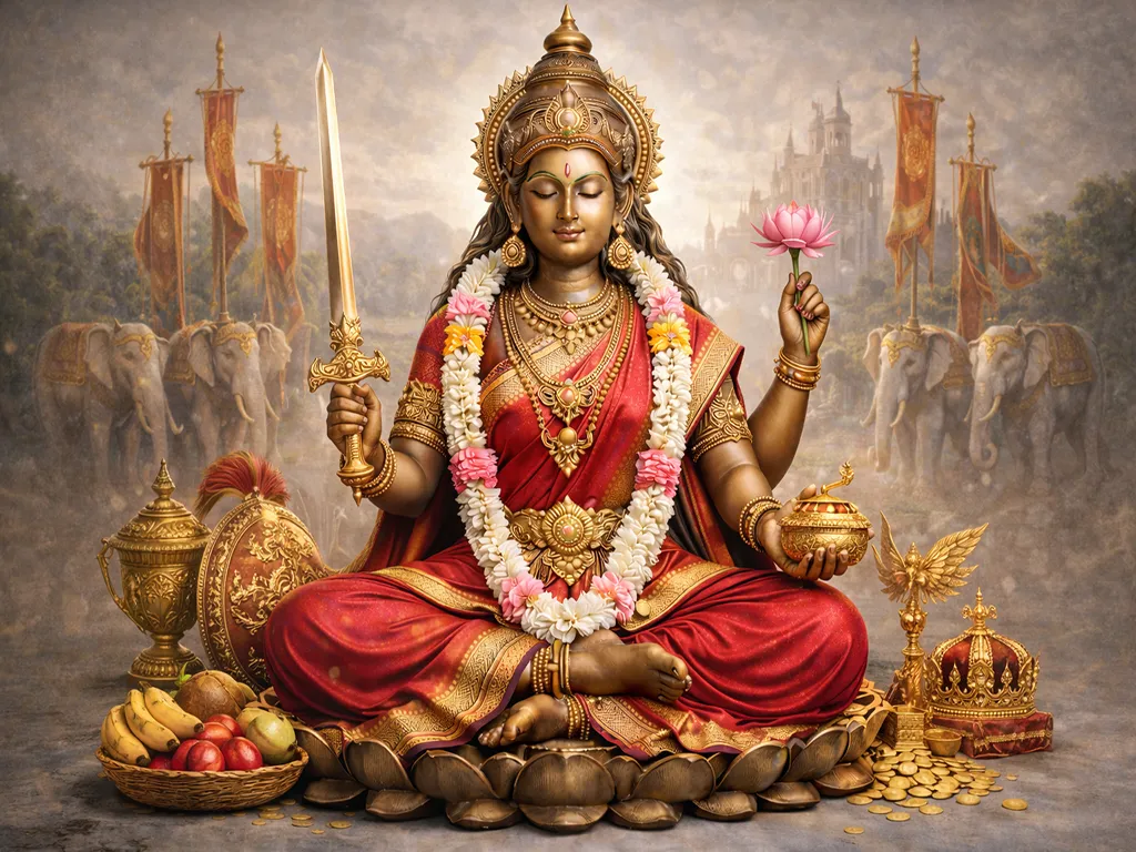Dhana Lakshmi is the movement of honest wealth; the blessing behind hard work, fair trade, and steady income. At Brahmapuram Sree Mahalakshmi Pratyangira Devi Temple, she does not answer prayers built on greed. She blesses those who earn without harming, who share without pride, and who use resources to lift others. Her presence protects the home that gives, not just receives.
