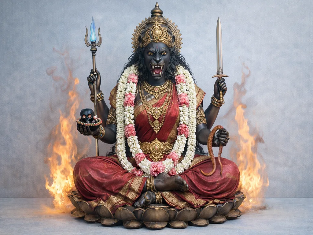 To pray to Sree Pratyangira Devi, come without hiding. Let your pain speak, even in silence. Break a single coconut with intent. Watch what it carries away. Participate in the Ugra Mahaprathyangira Homam if darkness lingers. She protects not through promises, but through presence. Her love is not gentle; but it is exact. What she removes never returns. And what remains is you, unburdened.